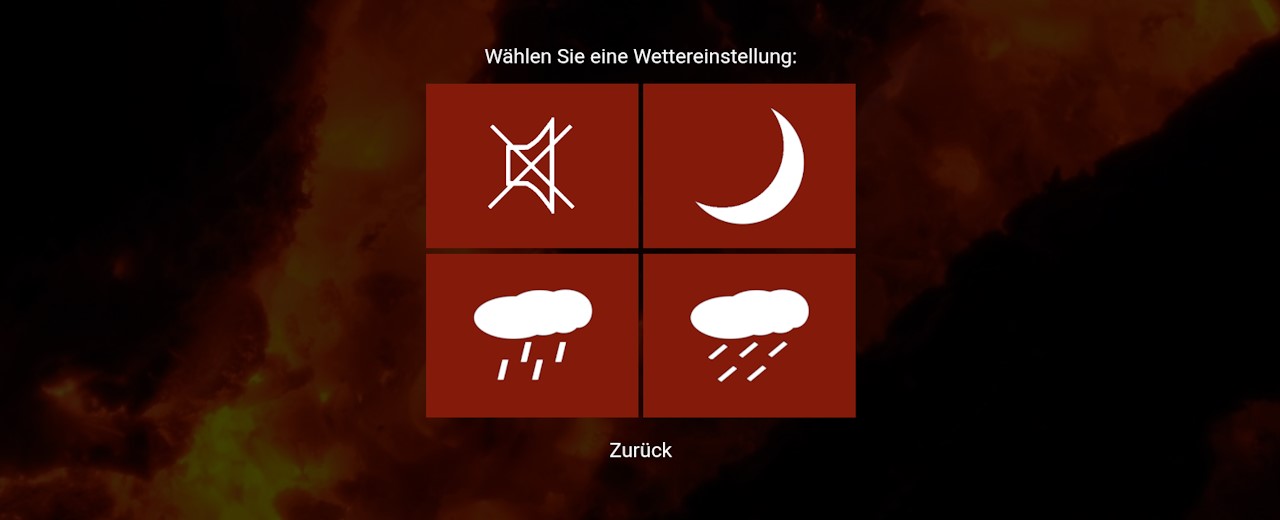 Im zweiten Schritt müssen Sie nur noch das gewünschte Wetter auswählen, denn dies bestimmt die Soundkulisse. Tippen Sie auf das Symbol mit dem durchgestrichenen Lautsprecher, um keinen Ton auszugeben: