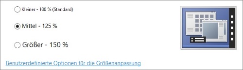 Oft tritt dieses Problem auf, wenn in der Systemsteuerung unter "Anzeige" die Vergrößerung auf "Mittel – 125 %" gesetzt ist. Gehen Sie in diesem Fall wie folgt vor (Beispiel anhand von Windows 8):