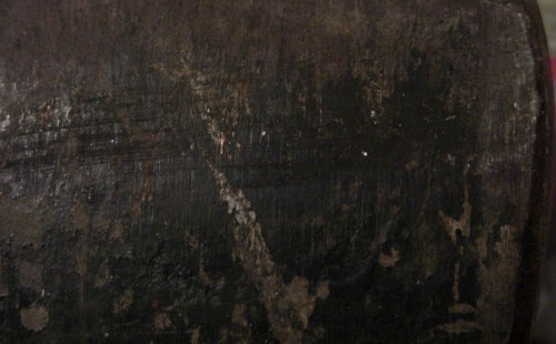 also z. B. nicht schräg mit der Seite. Verwenden wir diese Metalloberfläche: