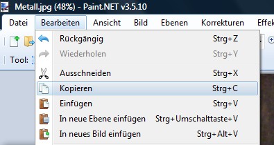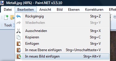 6. Fügen Sie den Inhalt der Zwischenablage anschließend in ein neues Bild ein (Bearbeiten - In neues Bild einfügen):